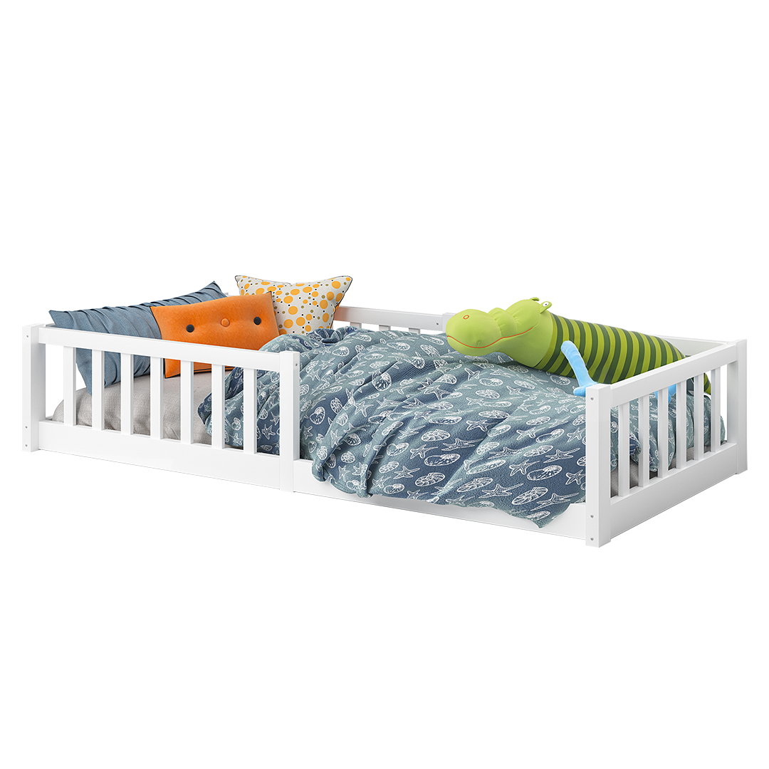Vere Bodenbett 90x200 cm, weiß, inkl. Lattenrost und Rausfallschutz