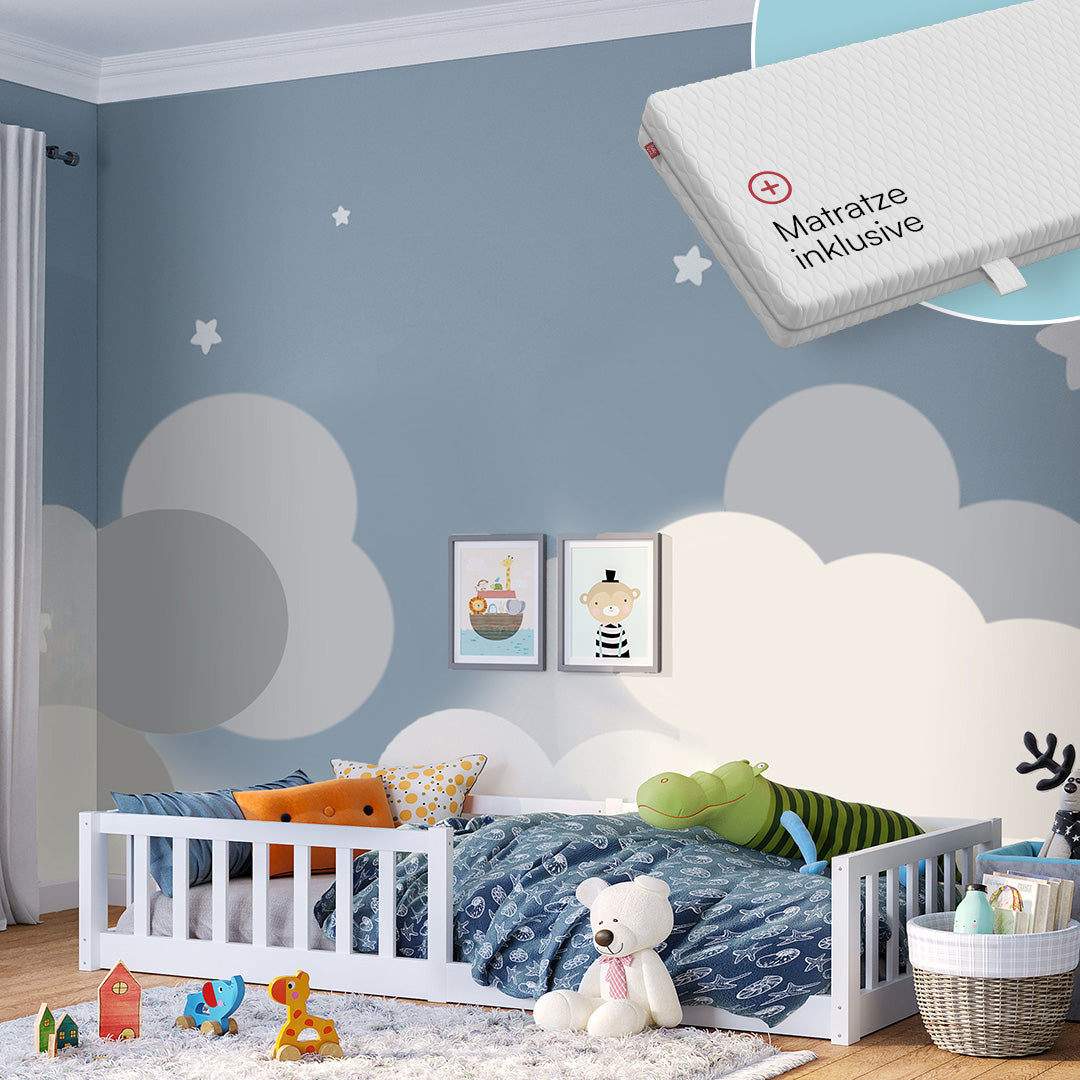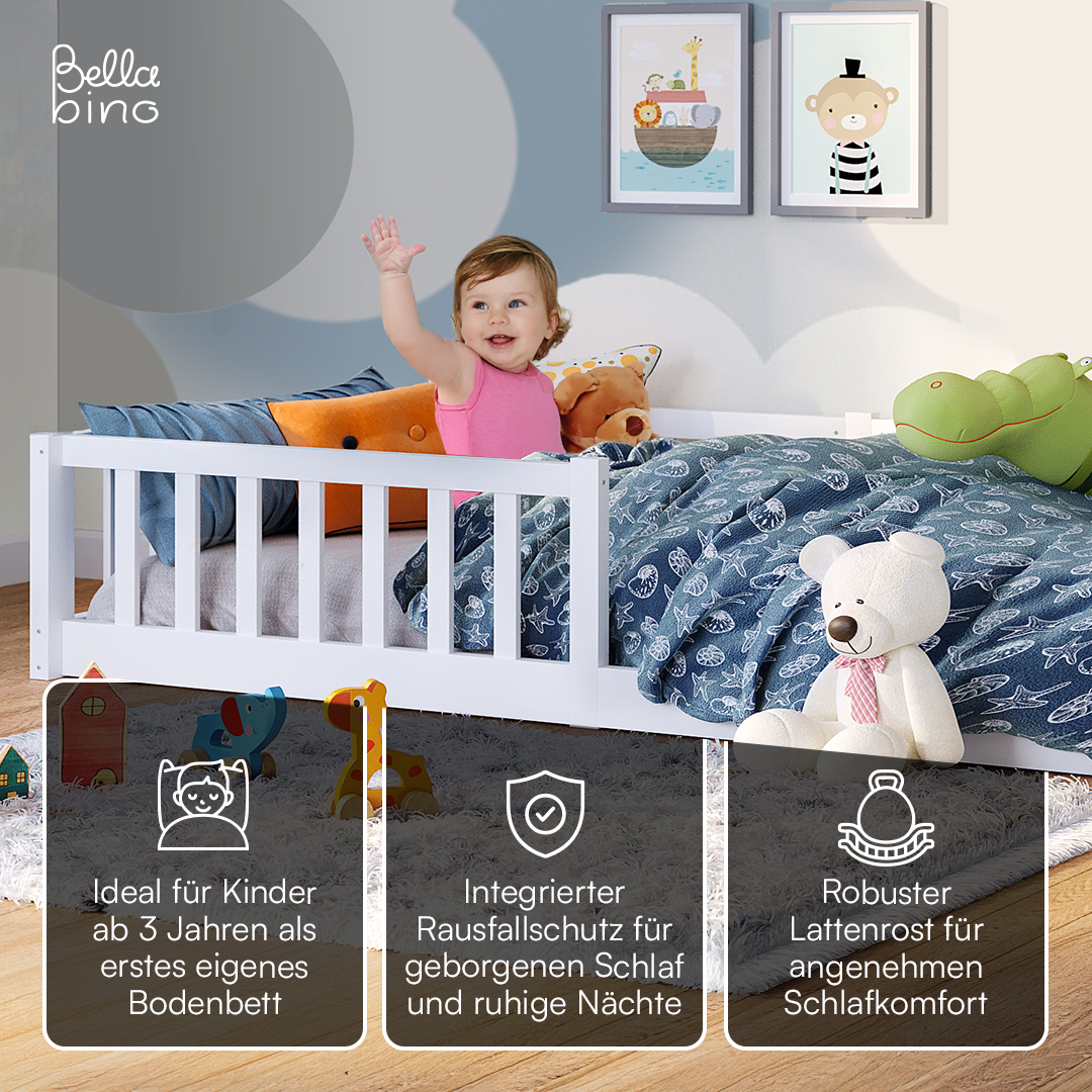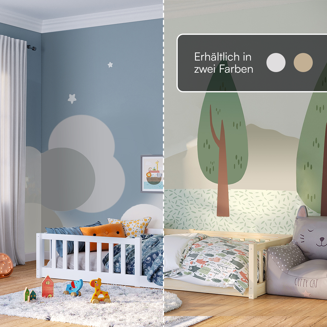 Das Bodenbett 'Vere' von Bellabino bietet eine ideale Schlaflösung für Kleinkinder, die eigenständig ins Bett gehen möchten.