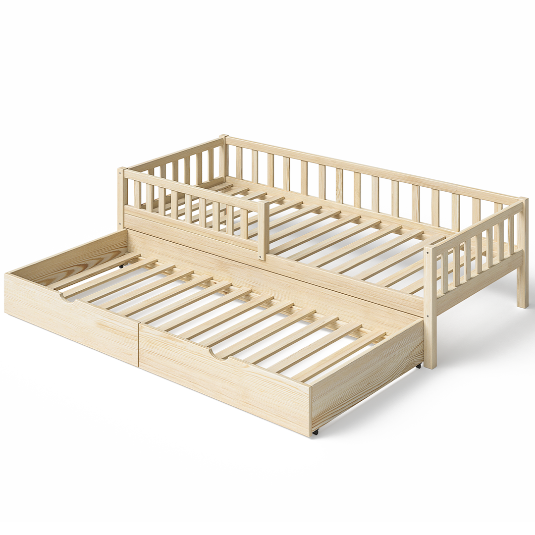 Vils Kinderbett inkl. Gästebett und Rausfallschutz, Kiefer massiv natur lackiert, 90x200 cm