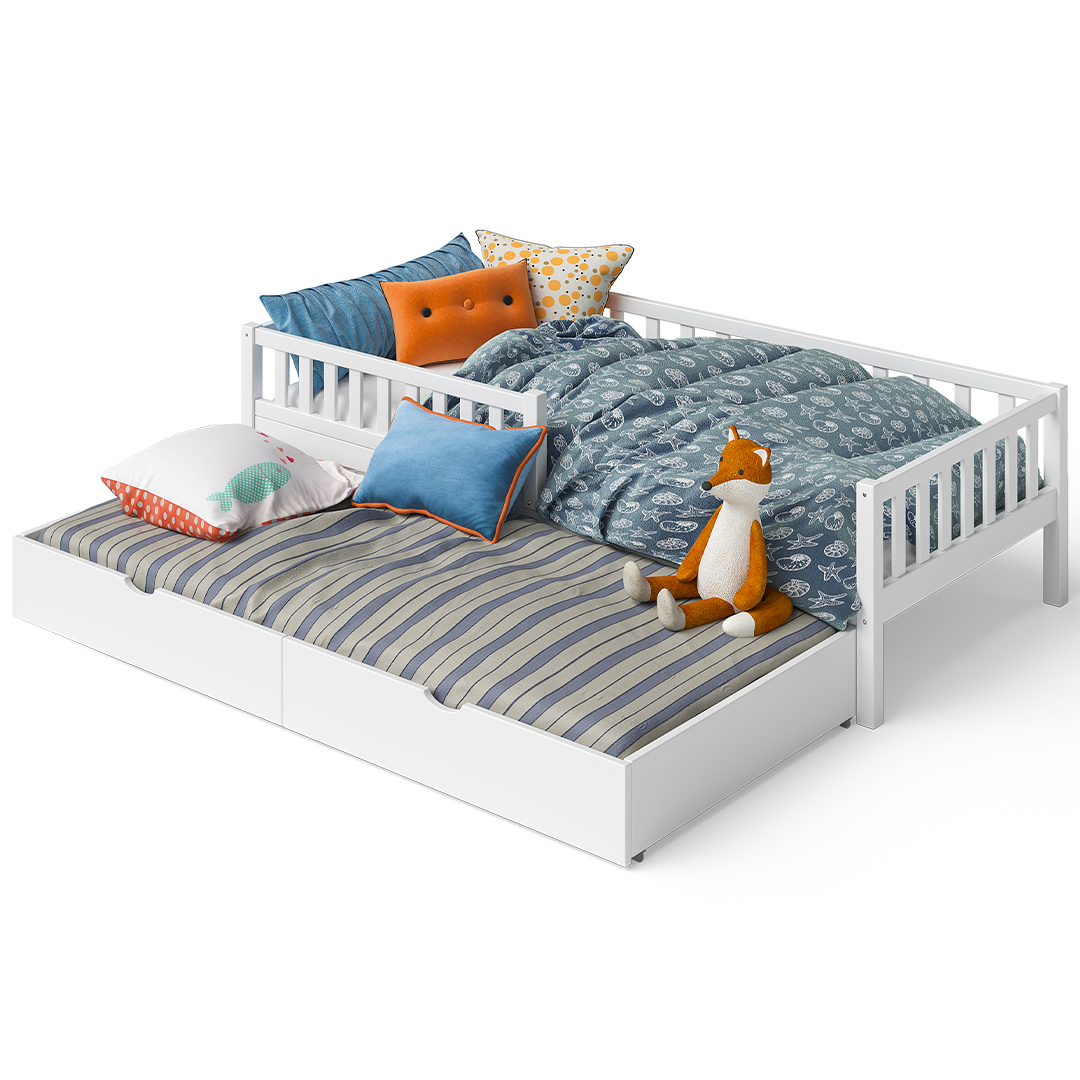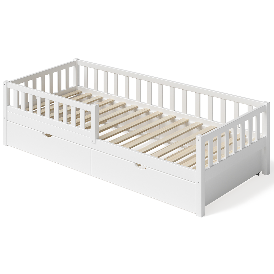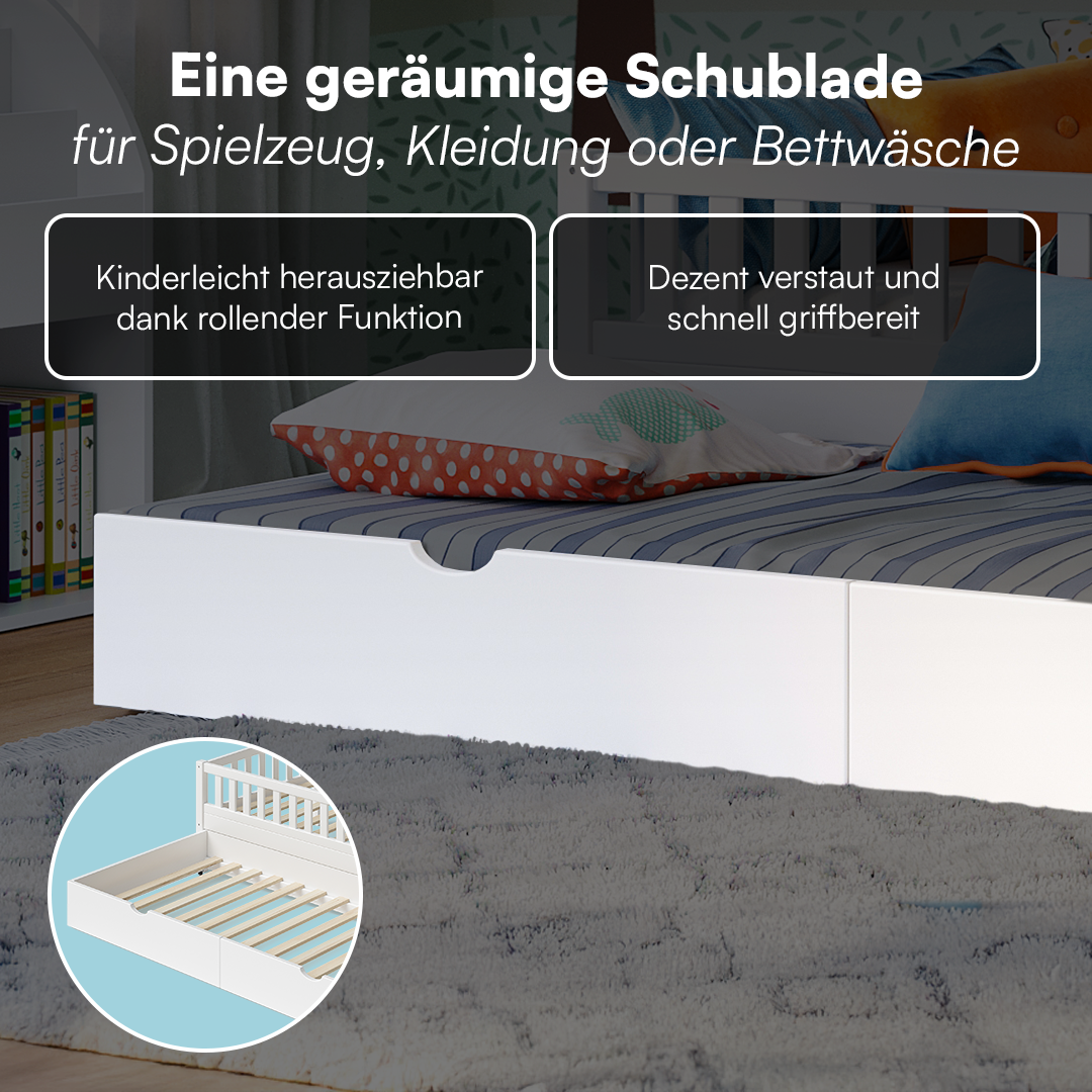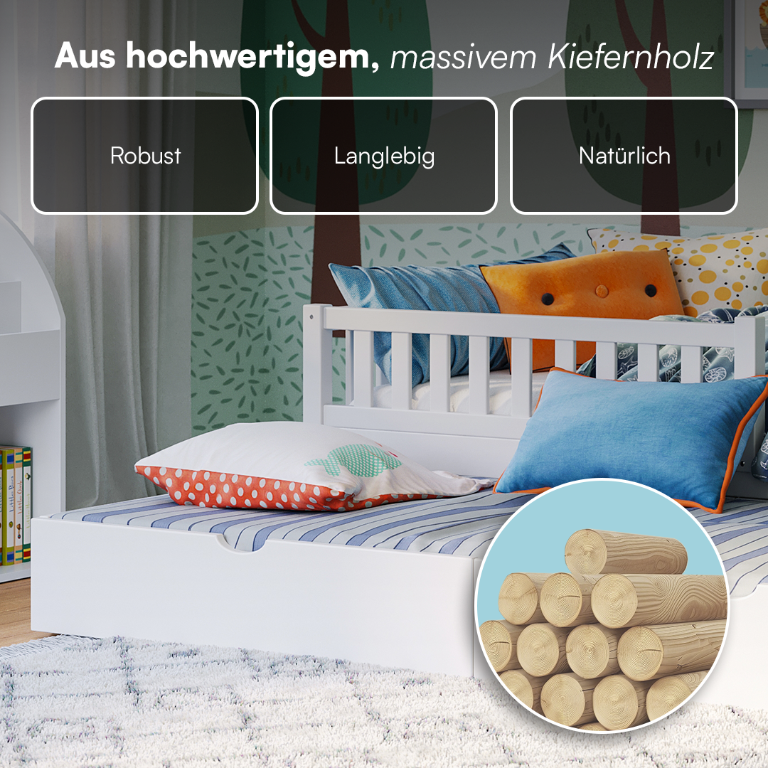 Vils Kinderbett inkl. Gästebett und Rausfallschutz, weiß lackiert, Kiefer massiv, 90x200 cm